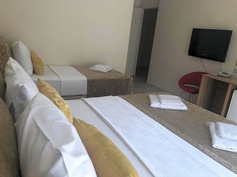 Features Western-style beds and a Japanese-style seating area with tatami (woven-straw) flooring. Decorated in pastels and light wood, this room offers an en suite bathtub with a shower attachment. Some rooms have views of Kirishima city.